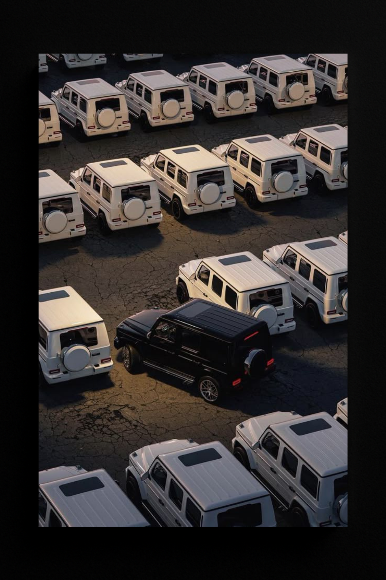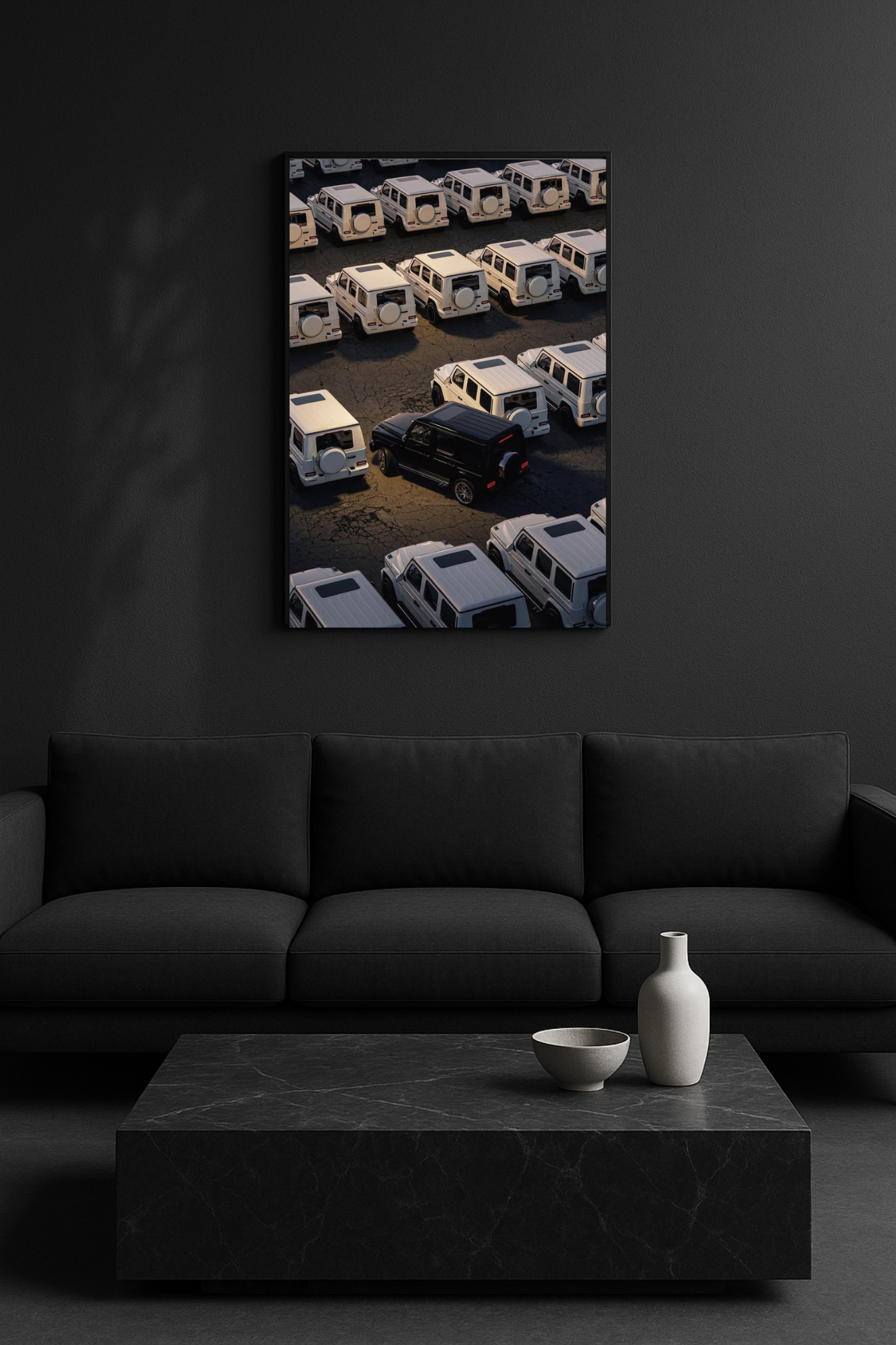 Δώσε στο χώρο σου έναν καμβά που εκπέμπει καθαρό luxury & power vibe. Ένα μαύρο G-Class ξεχωρίζει ανάμεσα σε δεκάδες λευκά, συμβολίζοντας την αυτοπεποίθηση, τη μοναδικότητα και τη δύναμη να διαφέρεις. Minimal αλλά ταυτόχρονα δυναμικό design που μαγνητίζει το βλέμμα.