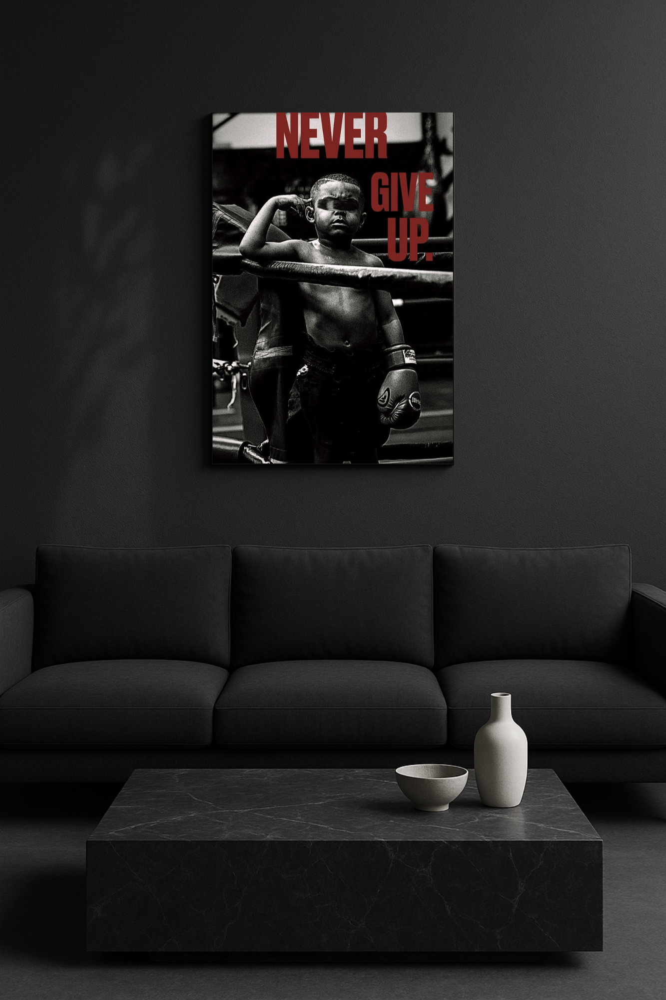 Ένα ασπρόμαυρο αριστούργημα που αποτυπώνει το βλέμμα, τη στάση και τη στάση ζωής του αυριανού πρωταθλητή. Το παιδί στο ρινγκ δεν ποζάρει — δηλώνει. Δύναμη, χαρακτήρας και αποφασιστικότητα από τα πρώτα βήματα. Ένας καμβάς γεμάτος έμπνευση, ωμή ενέργεια και ψυχική δύναμη.