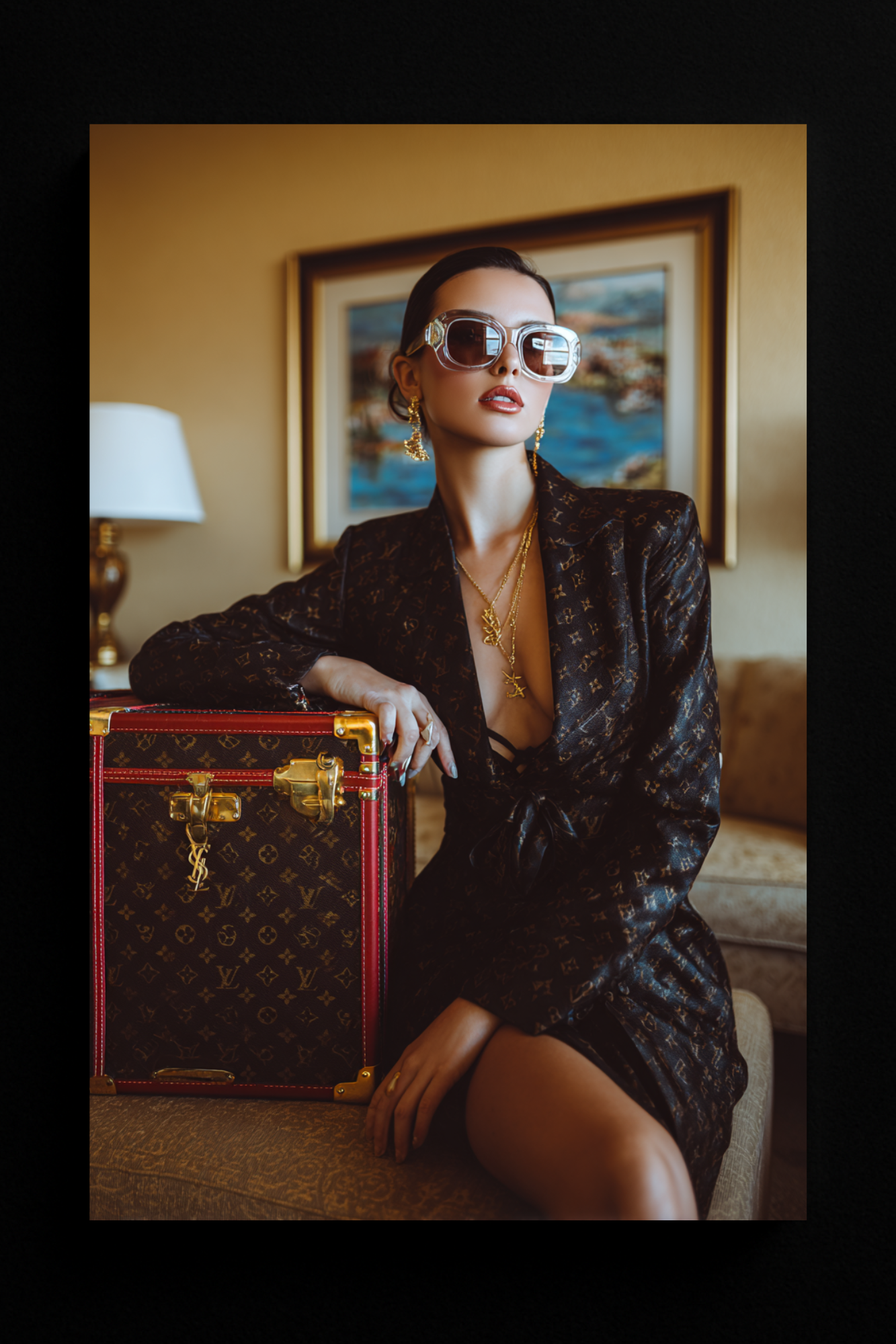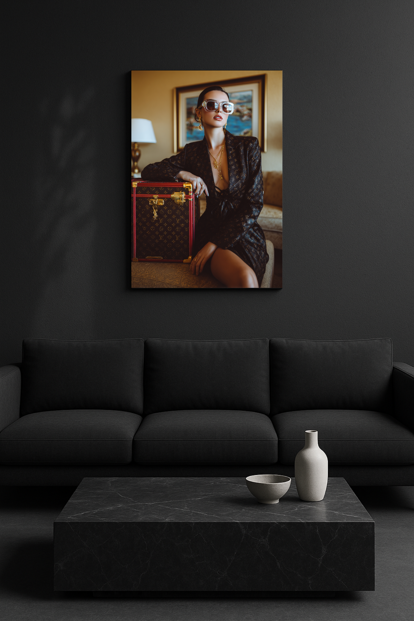 Φέρε την αίγλη και τον δυναμισμό της σύγχρονης πολυτέλειας στον χώρο σου με αυτόν τον εκρηκτικό καμβά. Η κομψή φιγούρα με oversized γυαλιά, χρυσά κοσμήματα και luxury trunks αποπνέει αυτοπεποίθηση, στυλ και δυναμική παρουσία. Ένα statement κομμάτι που ταιριάζει ιδανικά σε κάθε χώρο όπου η κομψότητα συναντά την τόλμη.