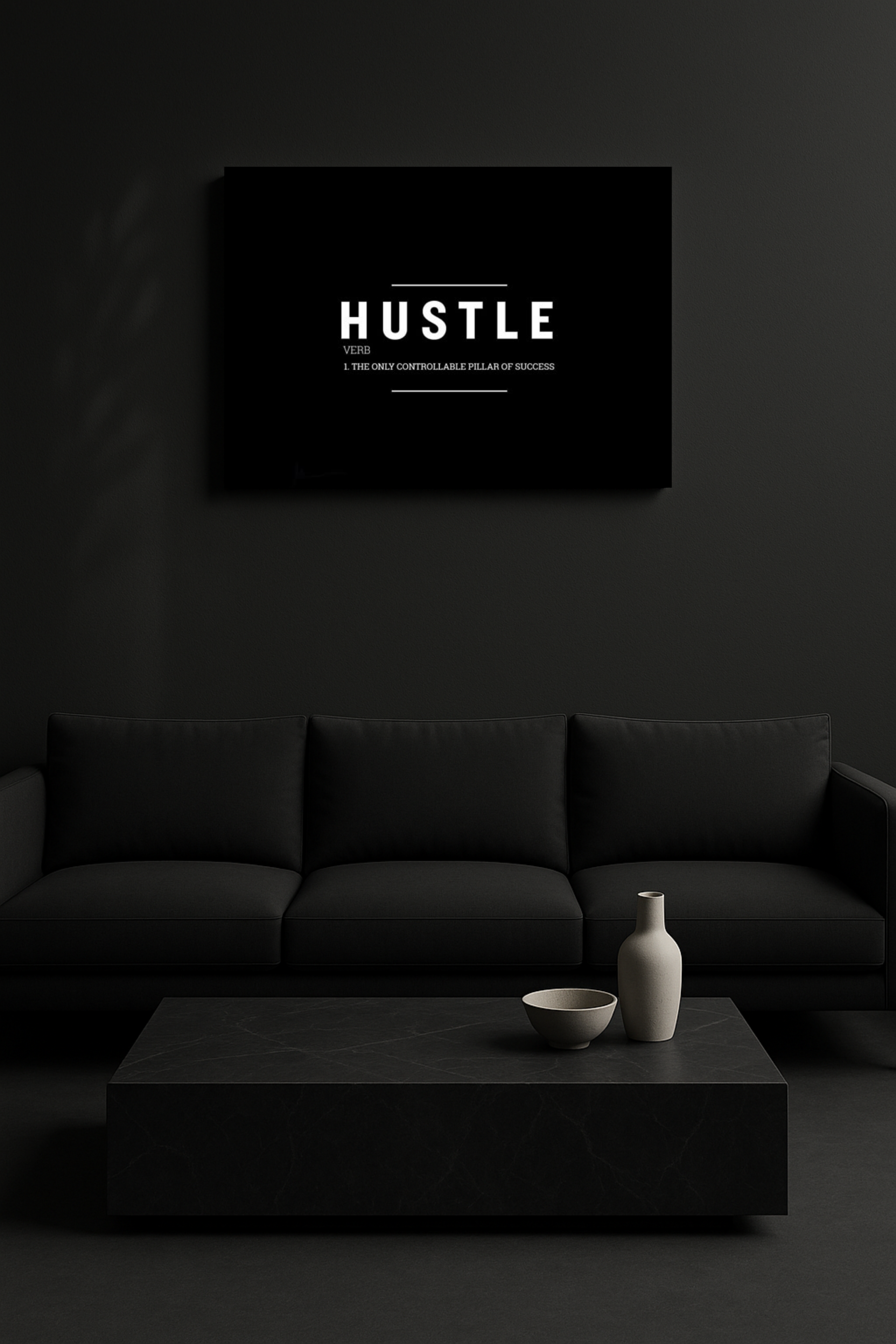 Η λέξη που συνοψίζει ολόκληρη τη φιλοσοφία της επιτυχίας. Ο καμβάς “Hustle” είναι ένας εμβληματικός συνδυασμός minimal design και ισχυρού μηνύματος: “The only controllable pillar of success.” Μια υπενθύμιση ότι η δουλειά, η πειθαρχία και η επιμονή είναι τα μόνα στοιχεία που μπορείς να ελέγξεις στον δρόμο προς την κορυφή.