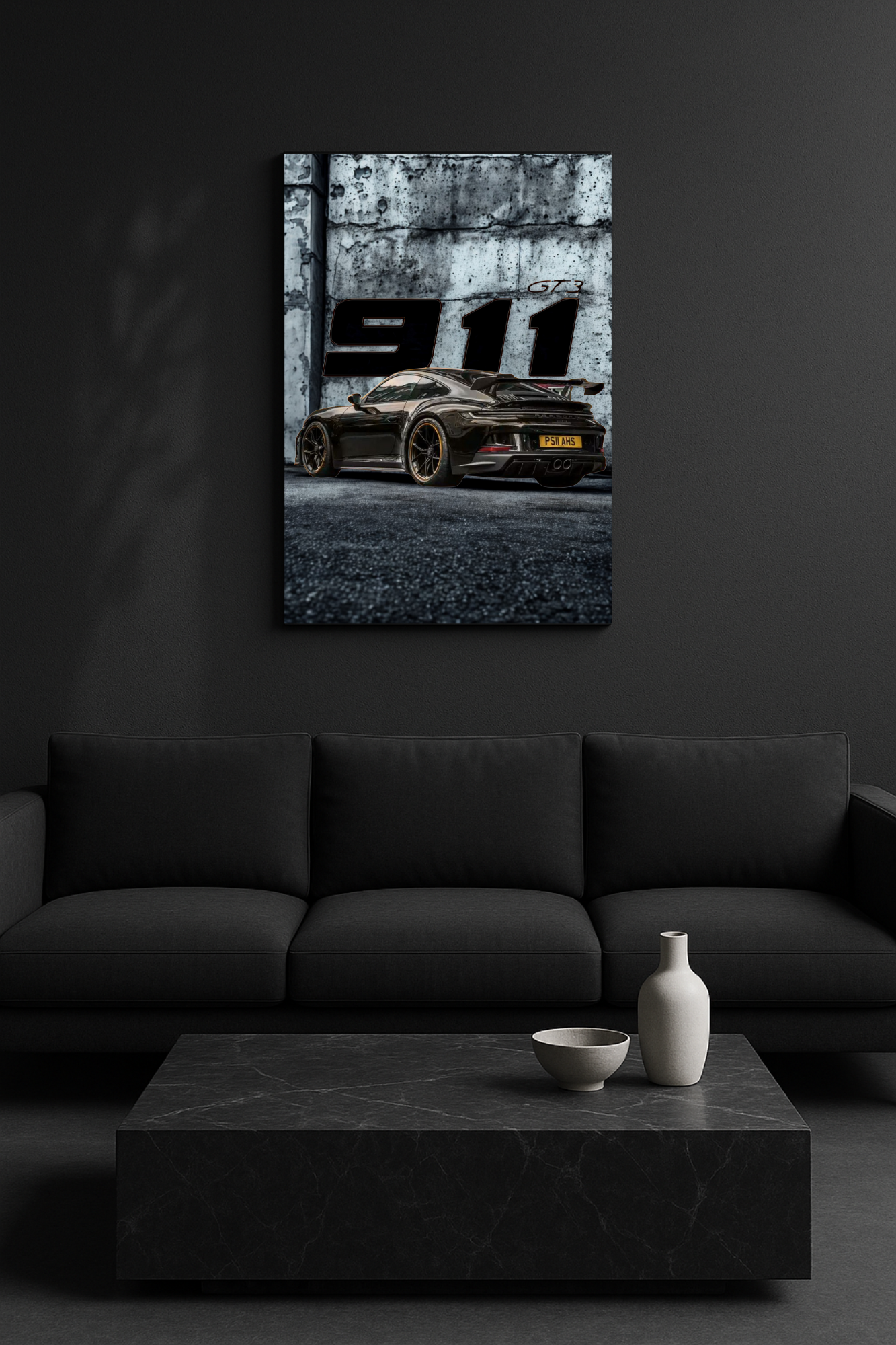 Η απόλυτη έκφραση ταχύτητας και κομψότητας. Ένα εμβληματικό μοντέλο Porsche 911 GT3 αποτυπωμένο σε μίνιμαλ φόντο, που αναδεικνύει κάθε γραμμή της μηχανικής τελειότητας και της αγωνιστικής του ψυχής.