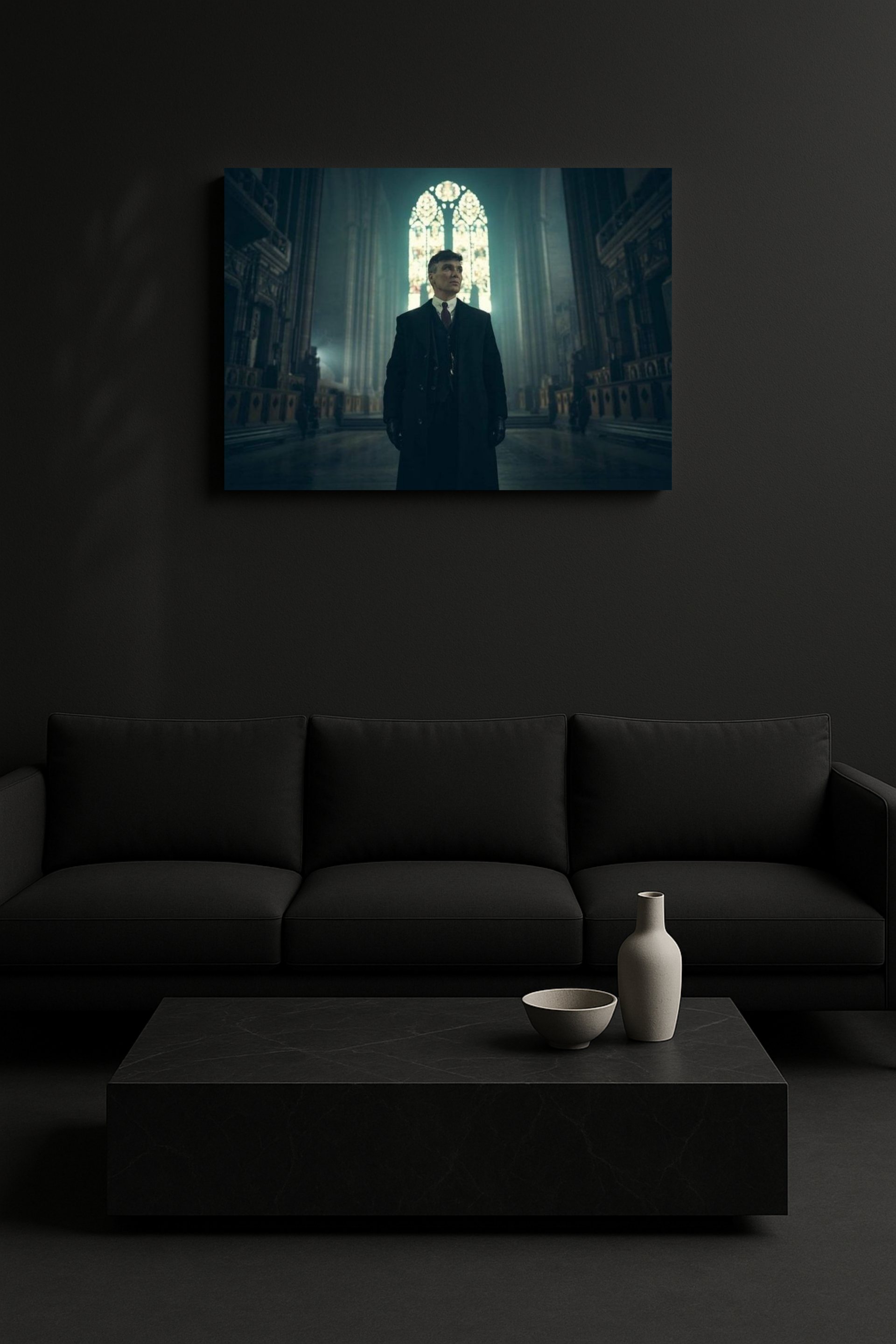 Ένα από τα πιο επιβλητικά στιγμιότυπα της σειράς Peaky Blinders, αποτυπωμένο με κινηματογραφική ένταση. Ο Thomas Shelby στέκεται μέσα σε μια εκκλησία, περικυκλωμένος από φως και σκοτάδι — ένα συμβολικό κάδρο που μιλά για δύναμη, πίστη και εσωτερική σύγκρουση. Ο καμβάς “Shelby’s Faith” είναι η απόλυτη επιλογή για όσους εκτιμούν την ισορροπία ανάμεσα στη σιωπή και την αποφασιστικότητα.