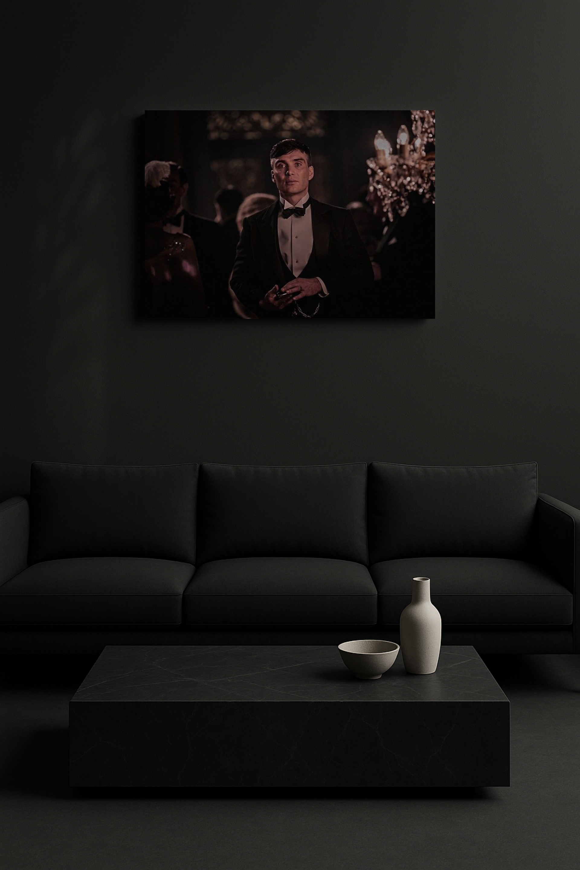 Η απόλυτη προσωποποίηση της δύναμης, της ψυχραιμίας και της κομψότητας. Ο καμβάς “The Gentleman Boss” αποτυπώνει τον Thomas Shelby με το χαρακτηριστικό του βλέμμα — ήρεμο, αποφασισμένο, αδιαπραγμάτευτο. Μια σκηνή που αποπνέει εξουσία και σιωπηλό σεβασμό, ιδανική για χώρους που αντικατοπτρίζουν κύρος και αυτοπεποίθηση.